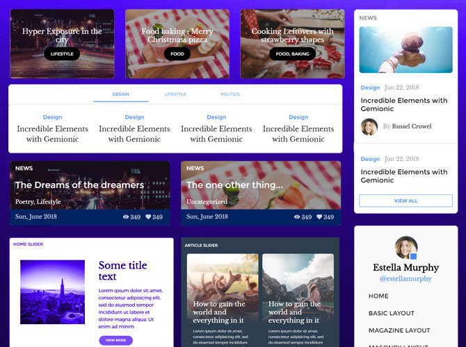 - Inclusive Layouts : Gemionic also comes with layouts that are handy for targeting mobile and tablet devices. These work independently from the components, so its handy if you need them, and okay if you don't