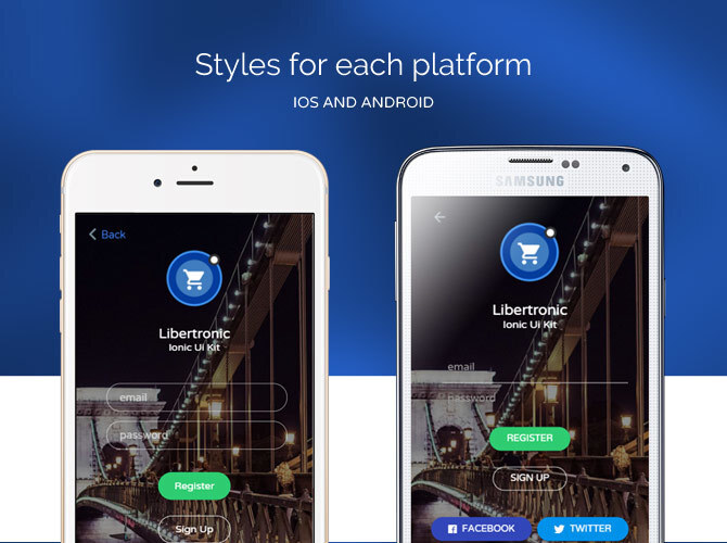 Libertronic is an Ionic 2 implementation inspired by the Liberty UI pack, giving you an already polished world standard UI to kickstart your ionic 2 shopping app.